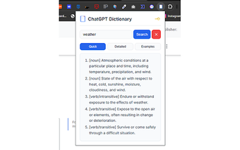 ChatGPT Dictionary adalah ekstensi Chrome yang dirancang untuk memberikan definisi kata secara instan saat berselancar di internet. Dengan hanya mengklik kanan pada kata atau mengetiknya di jendela popup ekstensi, pengguna dapat memperoleh definisi yang jelas dan relevan, yang didukung oleh teknologi ChatGPT. Ekstensi ini sangat berguna bagi siapa saja yang ingin memperluas kosakata mereka dengan cara yang mudah dan cepat.